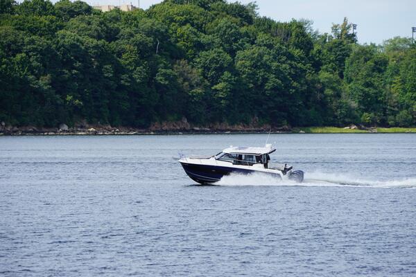 Easy Access: The NC 1095 Coupe features recessed sidedecks allowing for safe movement around the boat. There is a gate to starboard, making access on and off easy.