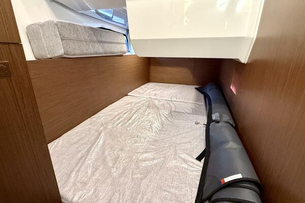 A nicely placed owner’s cabin forward complete with large center-line bed, long windows down each side, greatly enhance the overall comfort for the owner. The guest cabin to port offers roomy accommodations for kids or another couple. A third cabin to starboard can be utilized as either an additional double berth or simply additional storage with optional 21-gallon fridge.