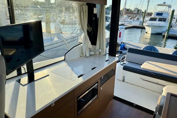 The fully equipped galley supports longer stays onboard, while sunbathing pads on the bow provide a perfect spot for lounging in the sun. Powered by twin Yamaha 300 HP outboards, the NC 1095 delivers both efficient cruising and impressive speed when needed. With thoughtful design and adaptable features throughout, the Jeanneau NC 1095 proves to be a truly multi-purpose cruiser.