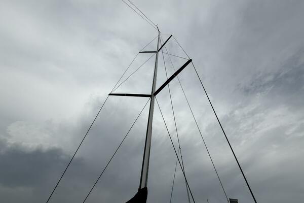 She is equipped with a custom carbon rig from Axxon Composites / Dracula Spars (w/ a hydraulic mast jack), and “Light Speed” carbon standing rigging. She has a plethora of Quantum Fusion M5 and M7 Racing Sails, including a new J1 that has never been used, and a new mainsail that has only been used in 2 events.