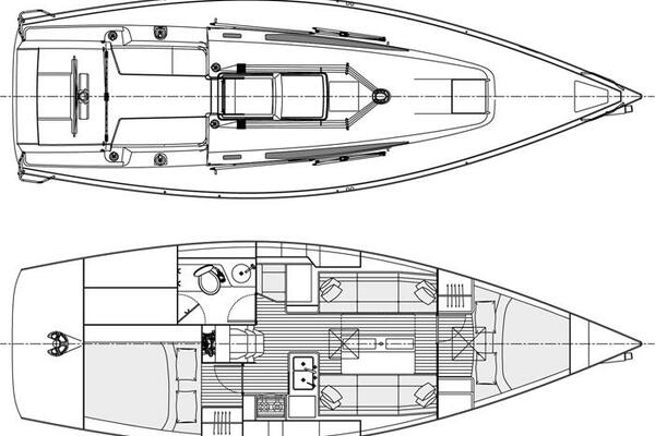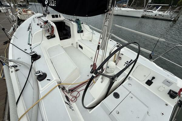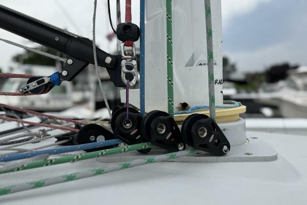 - Halyards led aft through 2 quadruple organizers and 4 rope clutches on each side of companionway