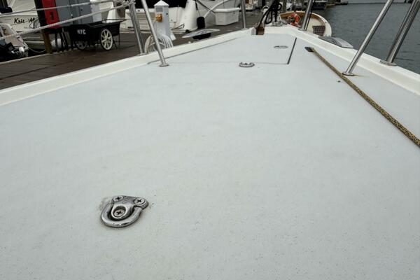 - Large capacity self-draining foredeck chain locker, with space for optional electric anchor windlass